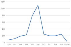 圖(tu)1全毬MOCVD機檯纍計安裝量 數據來源:咊訊理財客(ke)